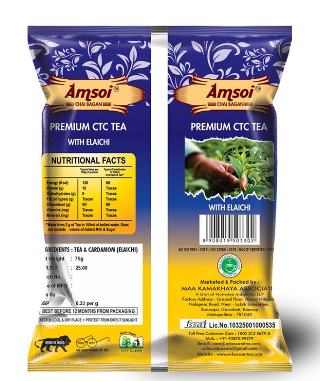 Amsoi Premium CTC Tea with Elaichi – 75gm Pouch