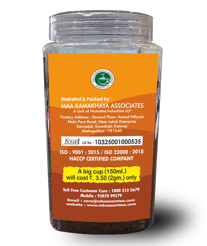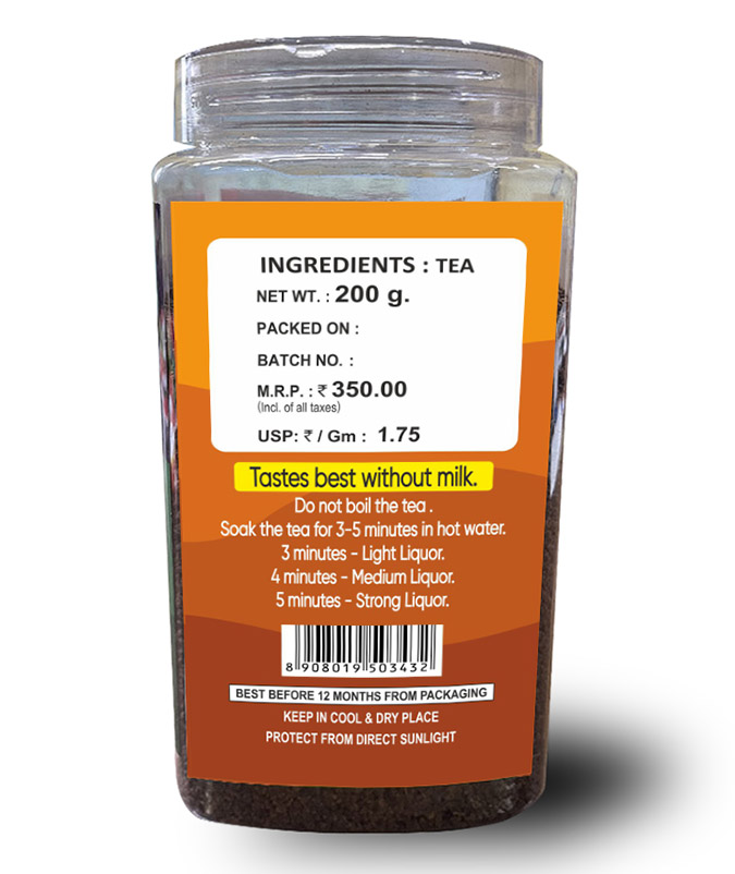 | Type of Tea (CTC/Blend/Orthodox/Darjeeling/Green/Elaichi) | Premium Leaf Blend |